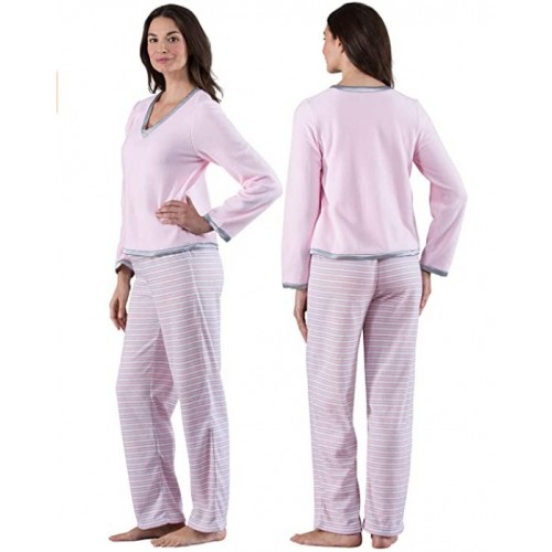 • PERFECT FOR RELAXING - Comes with two microfleece pieces: A long-sleeved top and full-length pants to seal out the cold. Extra special details like a satin trim on the neckline and cuffs add to the feminine appeal